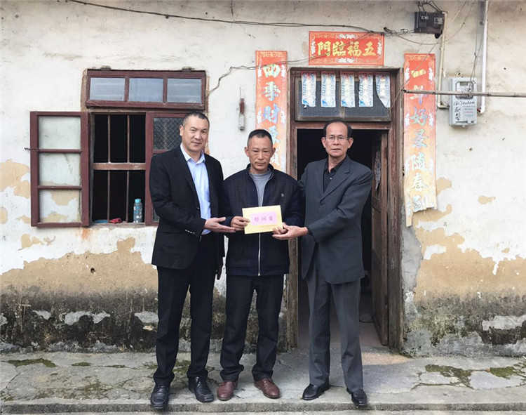 12月9日早上,爱促会秘书处召开完每月的例会后。组织秘书处工作人员和东莞的参战老兵18人驱车300多公里来到了韶关市翁源县铁龙林场龙化工区,为6户特困家庭分别慰问10000元。