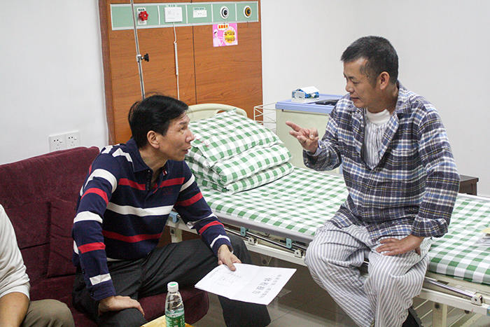 2015年11月3日,爱促会秘书处一行来到石龙镇人民医院探望患病留院的老兵黄子汝,给他送上慰问金和亲切的问候。黄子汝及其家人对秘书处一行的到来表示十分感动,“感谢党和政府,感谢爱促会!”。秘书处工作人员对他嘘寒问暖,详细了解他的工作和生活情况,勉励他早日战胜困难,早日康复。
