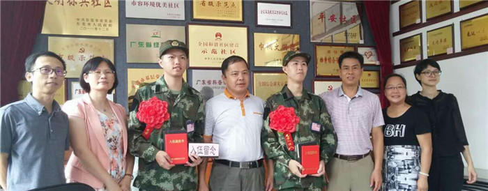 9月13日,东莞市爱国拥军促进会副会长曾旭棠、常务理事刘任仔、秘书长卢普润、退役军人联络服务部部长陈海良以及东莞七八参战老兵代表方绍金、刘富超等6人来到厚街,欢送厚街参战老兵陈耀全的儿子陈秋源参军入伍。