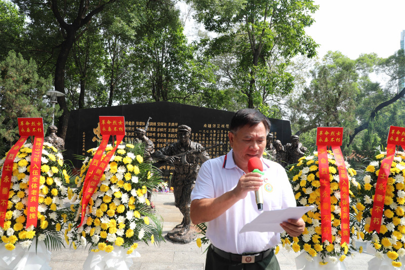 我会常务副会长陈沛东发表了讲话,他强调“烈士纪念日,是国家对英雄的最高礼赞,是人民对历史的深刻铭记。国家将烈士纪念日设立在9月30日(国庆前一天),就是为了让我们深切缅怀为民族独立、人民解放、国家富强和人民幸福而英勇献身的革命先烈们,永远牢记他们的牺牲和奉献。今日长眠于此的莞籍英烈们,正是千千万万革命者的缩影,作为新时代的爱国拥军工作者,我们不仅要记住他们的名字,更要读懂他们这份选择背后的信仰力量。”