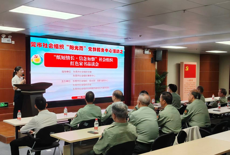 10月22日下午,由东莞市社会组织“阳光雨”党群服务中心统筹指导,我会组织约20名党员老兵齐聚市社会组织创新服务基地会议室,参与“纸短情长·信念如磐”红色家书品读会,接受了一场深刻的精神洗礼。