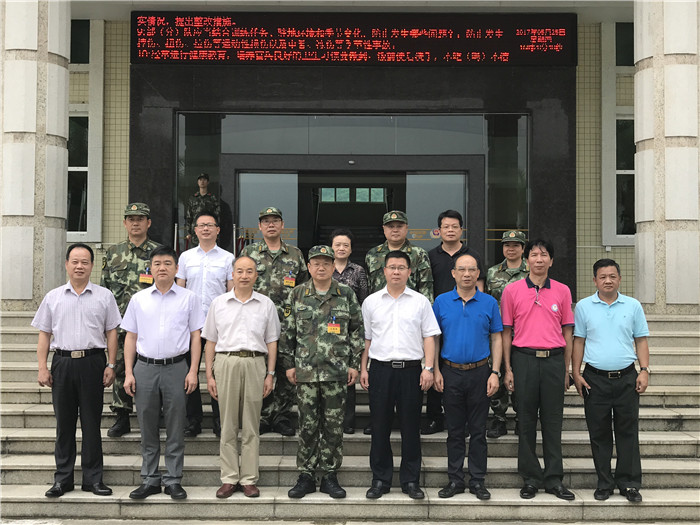 25日下午,省双拥办专职副主任刘卫党、市政府副秘书长、市双拥办主任张春扬率团慰问武警广州指挥学院在大岭山进行野营综合演练的1300多官兵。