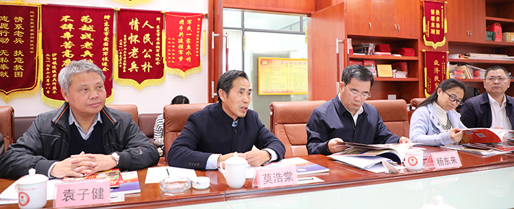 检查组领导一行到达后,首先察看了我会的办公场所,听取了该会会务工作人员的介绍和汇报,了解该会在民间爱国拥军领域的工作情况以及开展服务退役军人工作情况,随后在会议室举行座谈会。