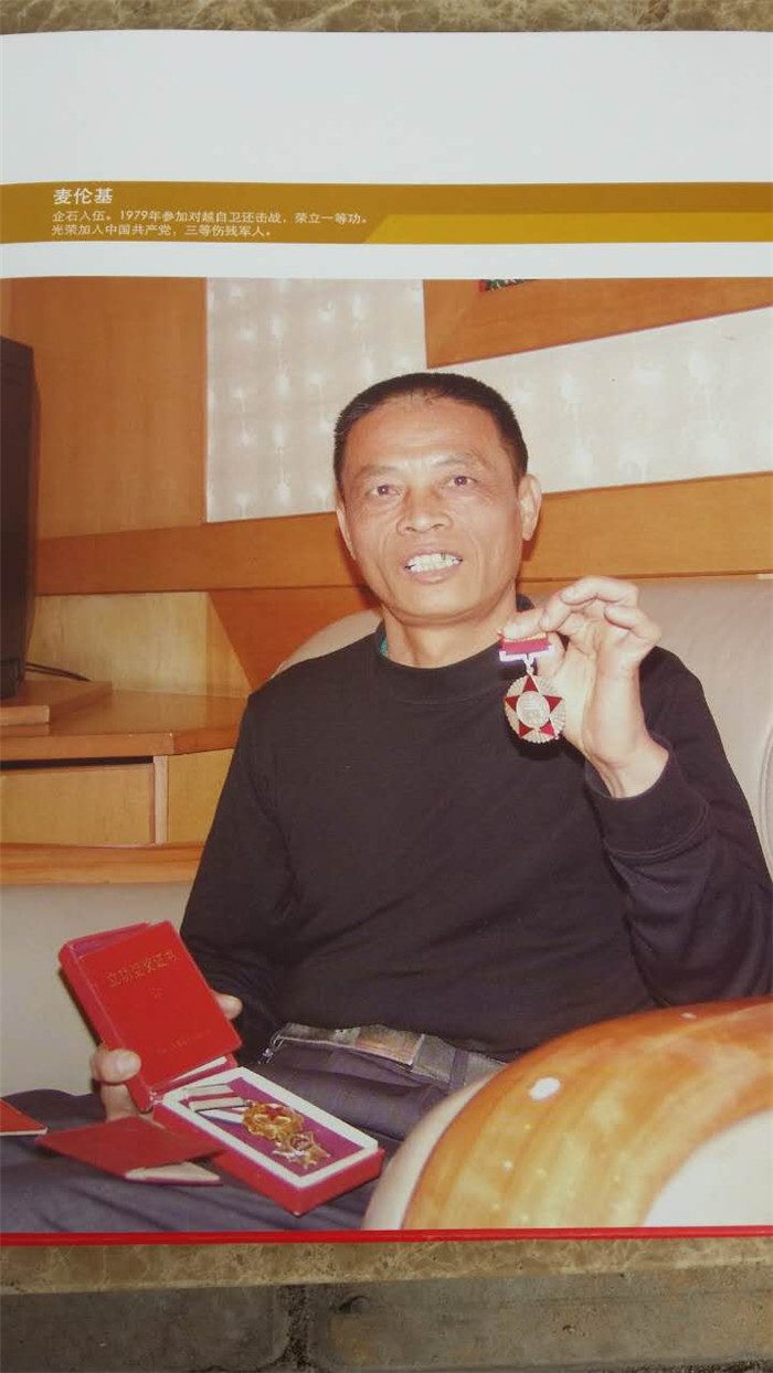 “麦伦基,362团5连战士,在1979年2月的对越自卫还击战中,表现勇敢顽强,冒着生命危险抢救战友,两腿中弹,在与部队失去联系的情况下,在枪林弹雨中坚持7天7夜,爬着找到部队……”这是从麦伦基的立功受奖证书上抄下的评语。
