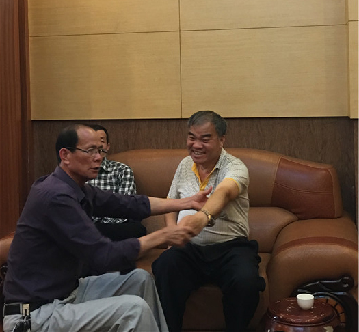 2016年3月的一天,老兵刘海满和叶超祺带我去大朗采访孙金明。战友们在一起聊天的时候,孙金明的话并不多,总是笑眯眯地看着战友们,因为在战争中头部受伤,孙金明的语言表达能力不是很顺畅。